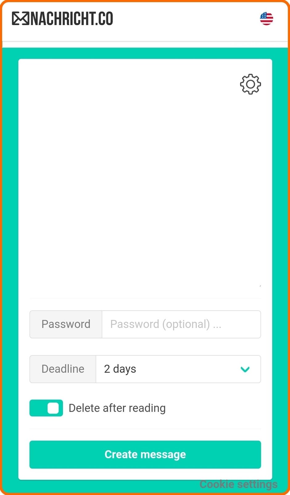 يمكنك تخصيص الرسالة بشكل كامل بالضغط على خيار الاعدادات الموجود أعلى يمين نافذة الكتابة، حيث يوجد خيار قفل الرسالة بكلمة مرور، إضافة إلى خيار تعيين مدة حذف الرسالة.